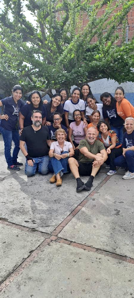 El primer día en Caucagüita nos reunimos con maestras de una decena de centros educativos en la Escuela de Don Bosco. Joan y yo compartimos con ellas parte de nuestra experiencia y conocimientos teatrales para estimular la lectura, la escritura y la creatividad en general en los niños.