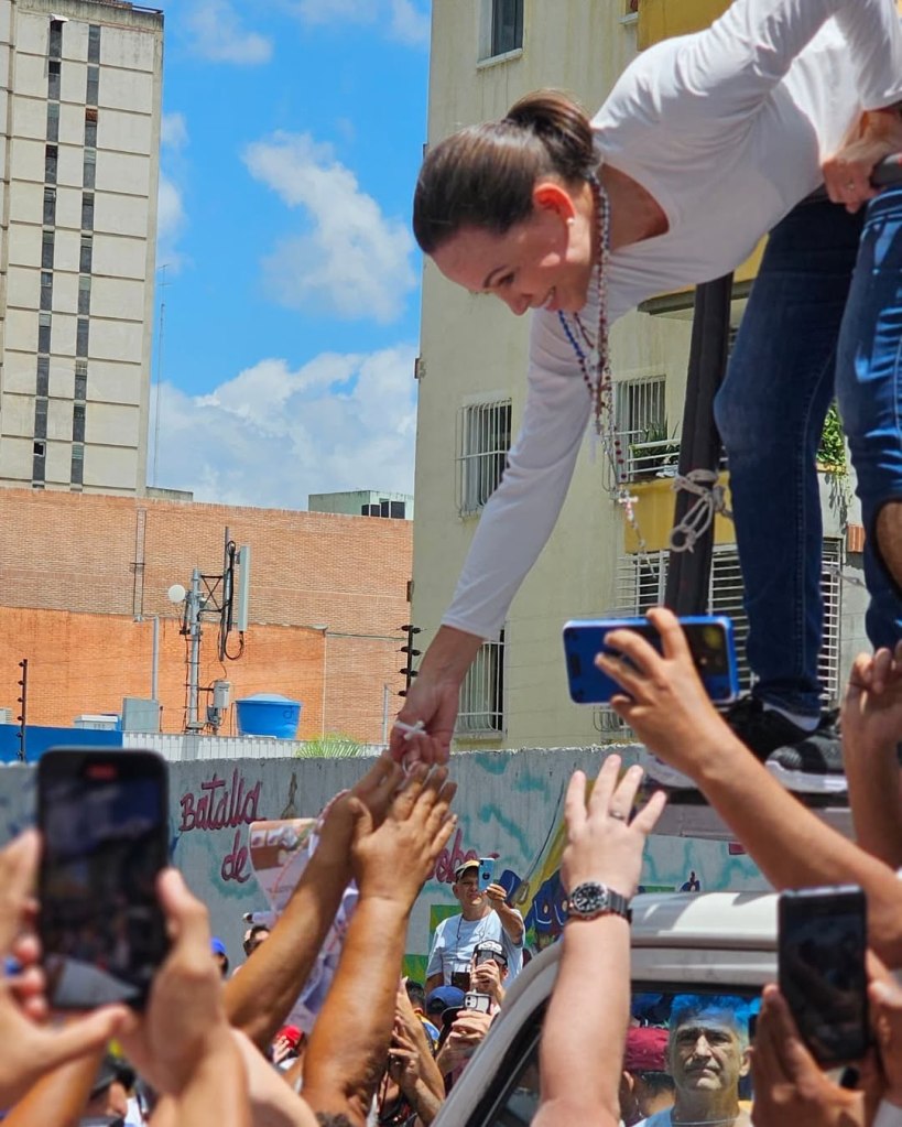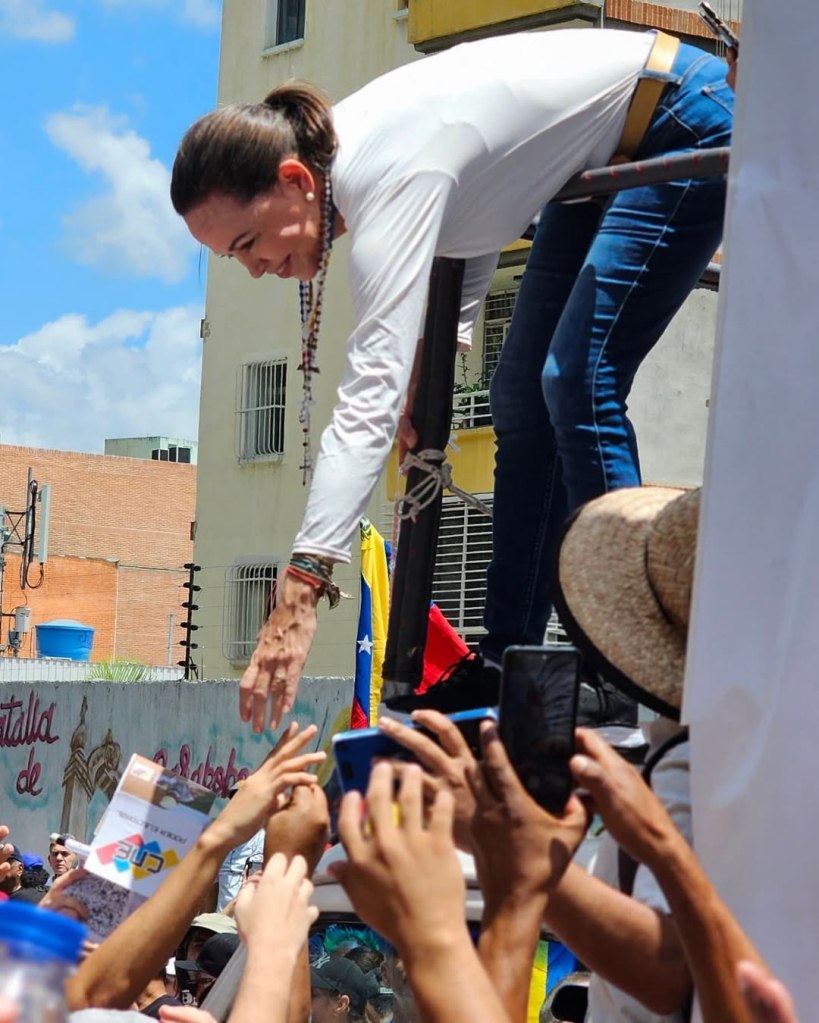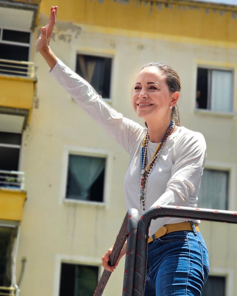 Aprovechando que el Pisuerga pasa por Valladolid, recuerdo que coincidí una vez con María Corina. Fue en la celebración del 12 de octubre de 2023 en Caracas, invitados por la Embajada de España. Ella ya había sido inhabilitada para concurrir a las elecciones generales, pero aún no la perseguían ni estaba obligada a vivir en la clandestinidad. Me la presentaron, cambié mi copa de mano y nos estrechamos las manos. Ella vestía de rojo madre.