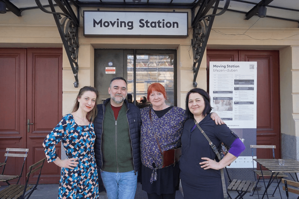 De izquierda a derecha: Andrea, un servidor, Blanka y Olga Pašková, superproductora de Moving Station.