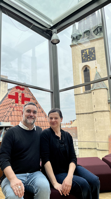De regreso a Praga, nos recibió la gestora cultural del Instituto Cervantes Nadia Hutnik y también visitamos la biblioteca, un enclave único por sus vistas para la lectura. Allí nos reencontramos, después de muchos años, con Marcela Petru. Qué alegría.