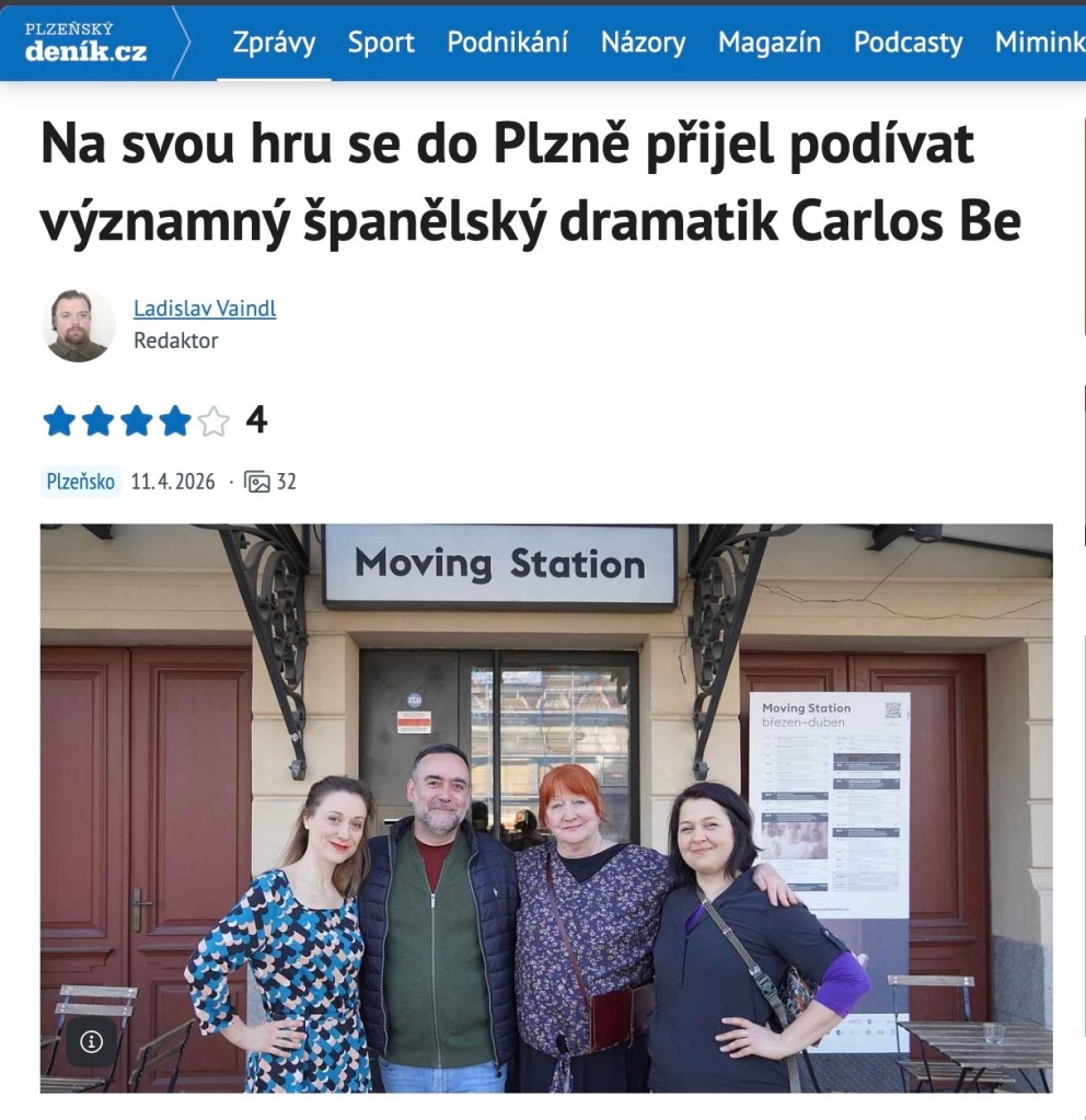 «El destacado dramaturgo español Carlos Be acudió a Pilsen para ver su obra», así reza el titular de cultura del diario Plzensky Deník, que se hace eco de mi visita a la República Checa para asistir a las representaciones de Clarissa —que en checo se titula Marissa, una laaarga historia que dejo para otra ocasión—. En cualquier caso: ¡cuántas alegrías me da este texto, la verdad!