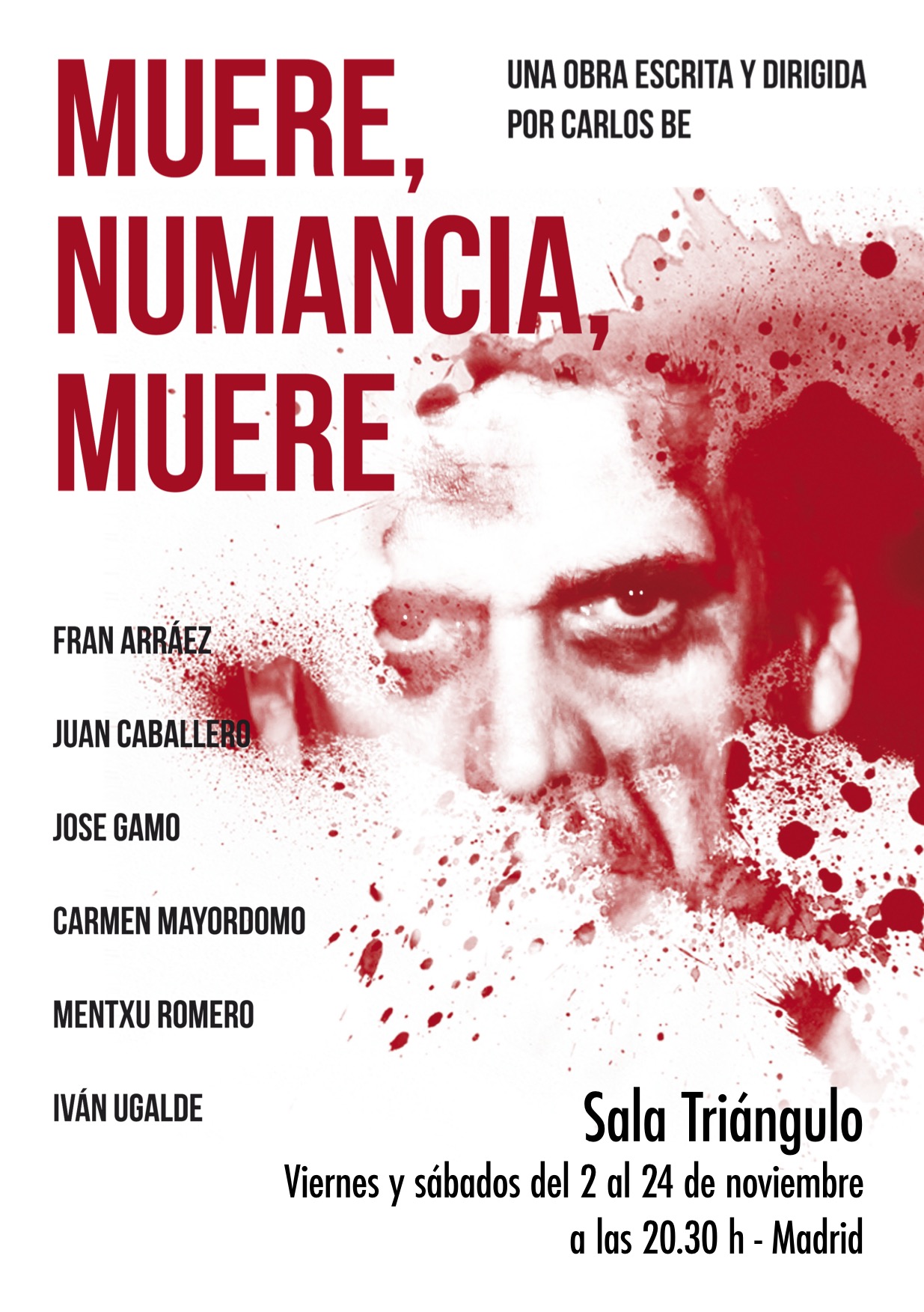 Muere, Numancia, muere parte de los últimos días de la cercada Numancia y abarca hasta nuestros días -tal como hiciera Miguel de Cervantes en su momento hasta el reinado de Felipe II- para hablarnos del hombre y la guerra: un debate entre el poder autoritario y los rebeldes, entre los opulentos y los hambrientos, en un paisaje de guerra que atraviesa veintidós siglos.