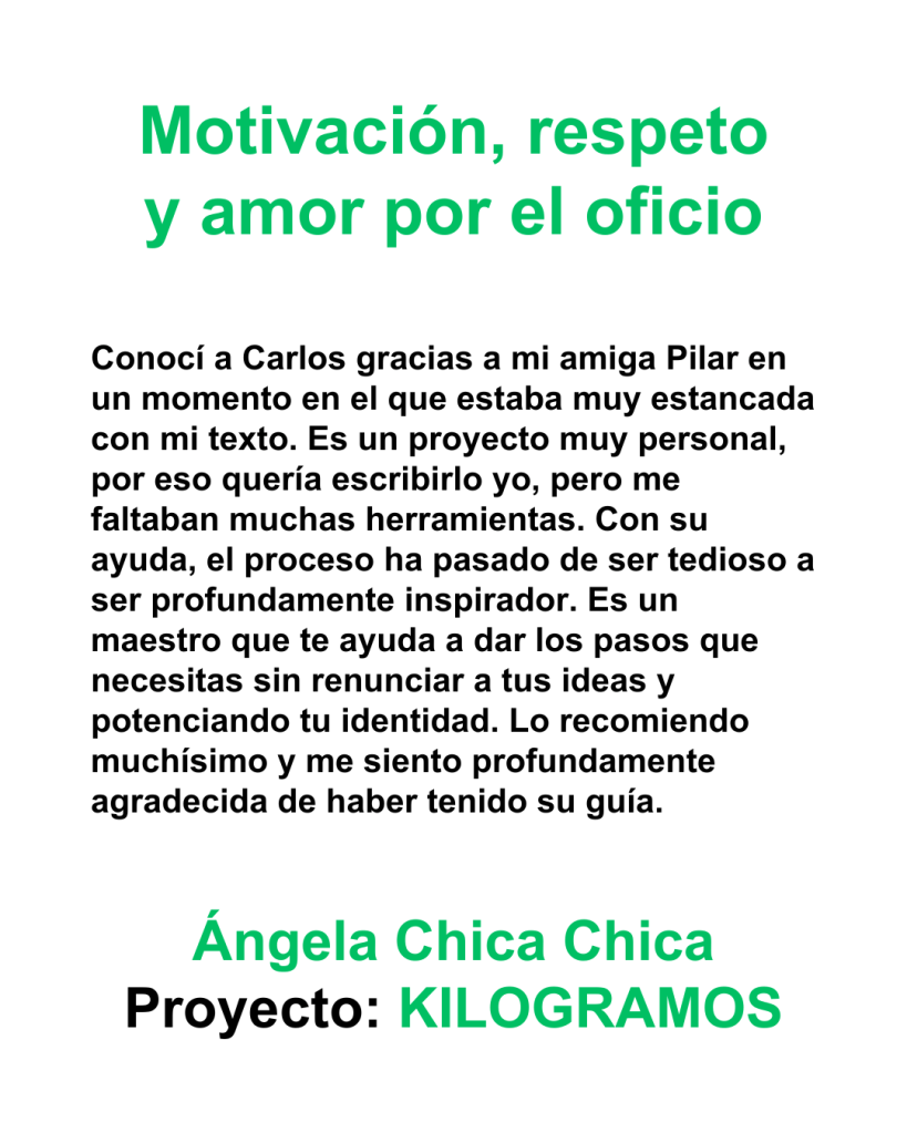 Antes de iniciar una tutoría, Carlos Be realiza una breve entrevista con el/la interesado/a para conocer el material escrito o de partida con el que se cuenta, valorarlo y poner en común los objetivos a alcanzar por cada bloque de cuatro sesiones de tutoría.